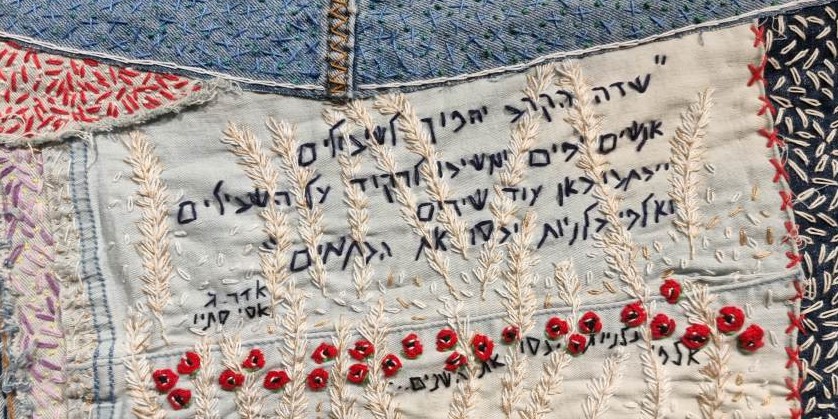 מתחילת המלחמה אליס רקמה שירים על פיסות ג'ינס שחוברו לשטיח קיר.