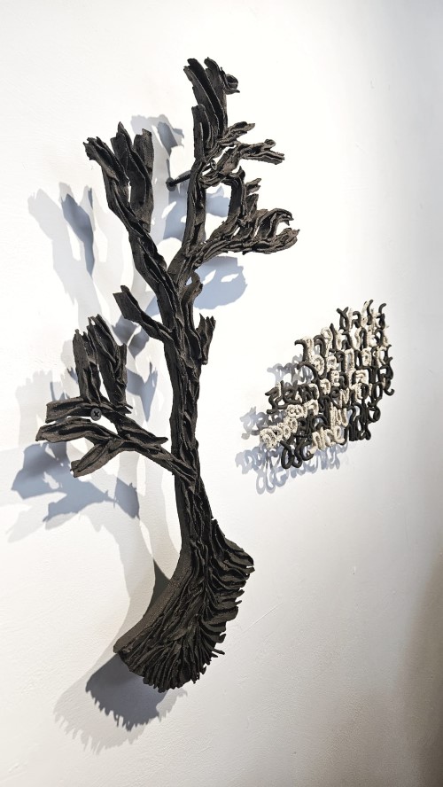 כמו בשיר גם בעבודת הקרמיקה מופיע דימוי הענף לכאורה עדין ואולי אף שביר אך למעשה איתן.