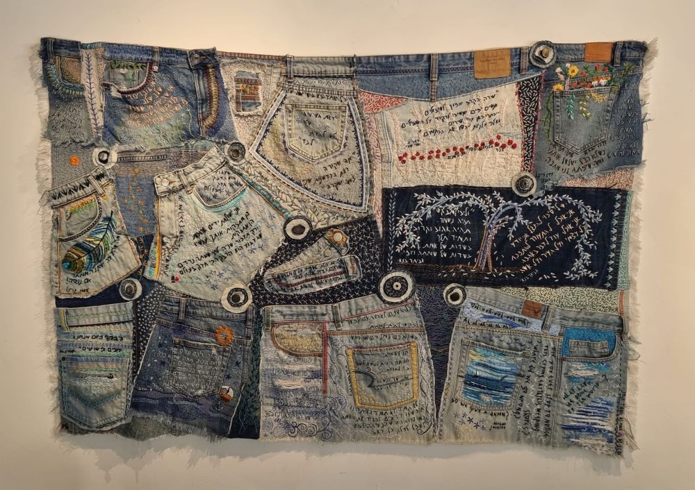 רקמה בחוטי רקמה על גבי פיסות בד ממכנסי ג'ינס ישנים