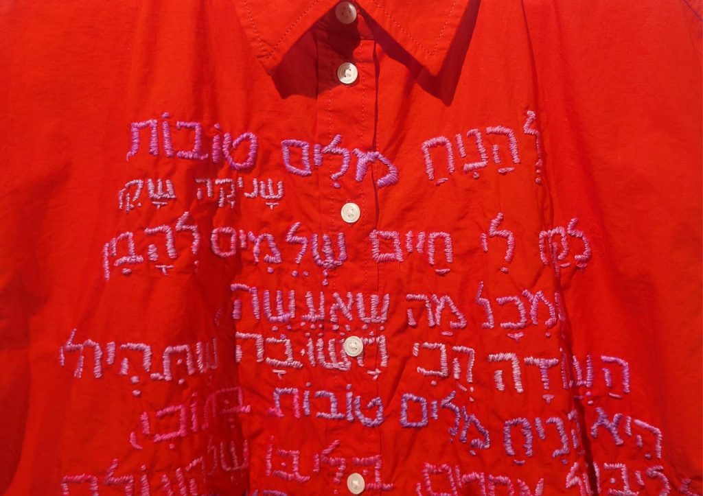 המילים רקומות בנגטיב אדום, כצעקה חזותית של סכנה וקריאה לפעולה.