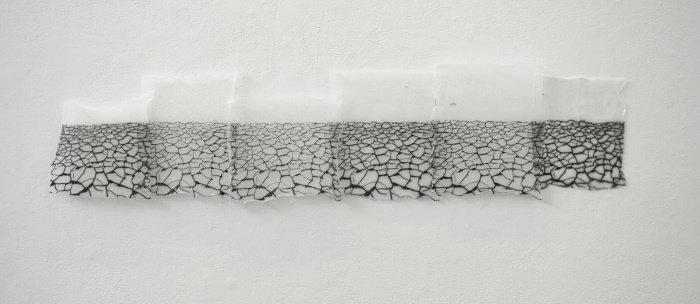 צמאון עשויה הדפס בדפוס חוזר על עצמו, מורכבת מריבוי דימויים של אדמה יבשה ושבורה אשר יחד יוצרים אופק. השבר קיים ומתוכו אפשרויות הצמיחה.